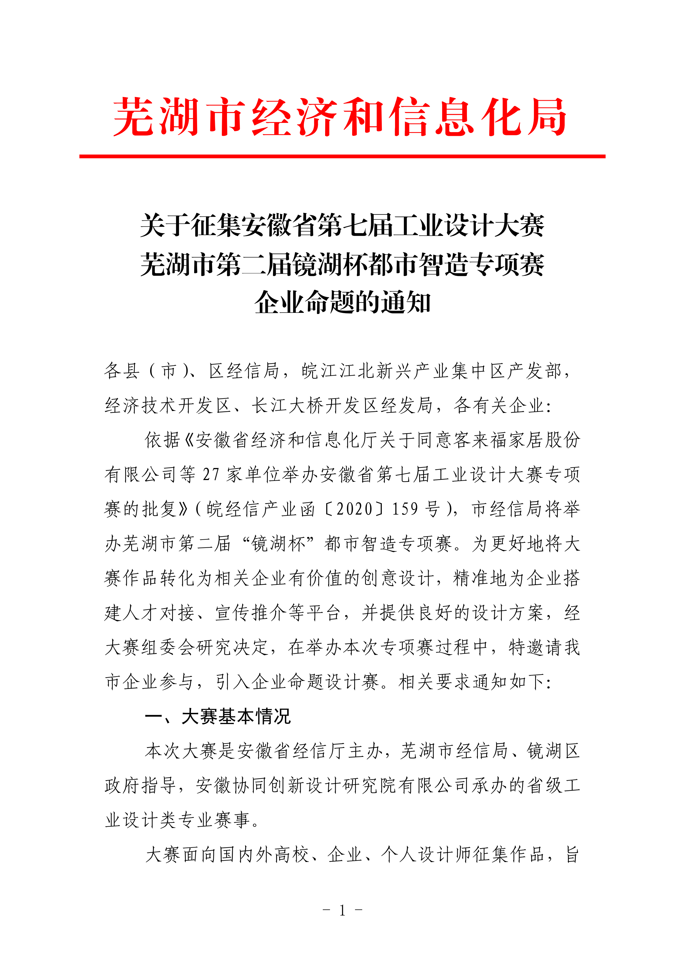 關(guān)于征集安徽省第七屆工業(yè)設(shè)計(jì)大賽蕪湖市第二屆鏡湖杯都市智造專項(xiàng)賽企業(yè)命題的通知