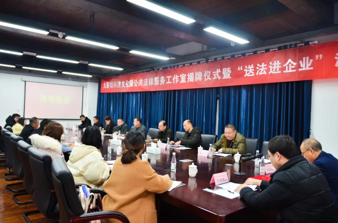 12月11日,大礱坊科技文化園公共法律服務(wù)工作室揭牌儀式暨“送法進(jìn)企業(yè)”活動(dòng)在園開(kāi)展,區(qū)司法局、區(qū)委政法委、區(qū)法院、區(qū)檢察院、區(qū)工商聯(lián)、區(qū)經(jīng)信局、區(qū)委常委、政法委書記魏峰及各成員單位、園區(qū)負(fù)責(zé)人、企業(yè)代表等50余人出席活動(dòng)。
